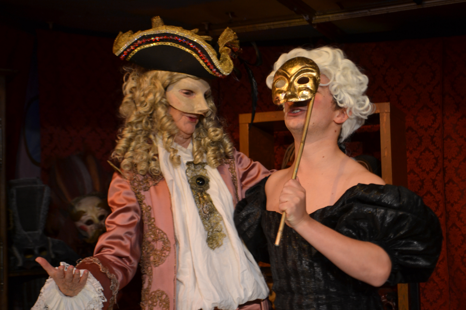 Laissons là les malencontreux déboires de cette si jolie salle de spectacle et apprécions les bonheurs de la scène… Attilio Maggiulli présente avec humour Les Délices du chocolat et puis… Venise composé de quatre scènes extraites des œuvres de Goldoni (L’Éducation d’une jeune courtisane, Arlequin valet de deux maîtres, Trilogie de la villégiature, L’Épouse rusée et prudente) tout en racontant l’extraordinaire histoire de Venise, de la Commedia dell’arte et… du chocolat, fil rouge du spectacle (un luxe gustatif que seule la noblesse pouvait s’offrir au XVIIIe siècle). Pour nous mettre en bouche, un délicieux chocolat noir à croquer est proposé aux spectateurs à l’entrée de la salle (comme à la sortie).